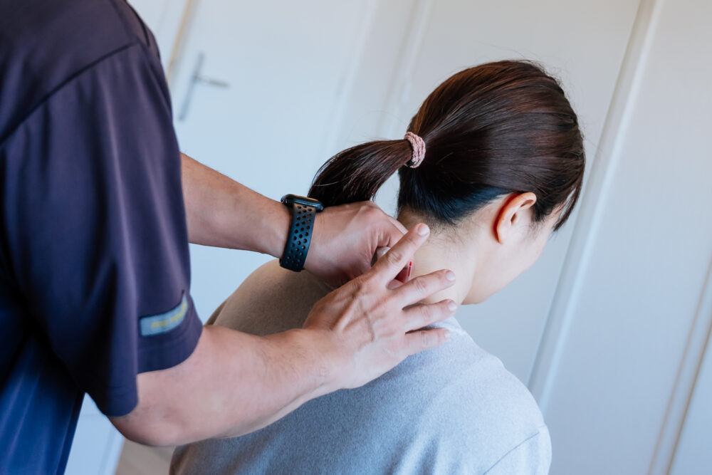 五十肩は、安静時や夜間に強い肩の痛みが出やすく、髪をとかす・帯を結ぶなど日常動作で痛みが増し、肩の動きが大きく制限されます。